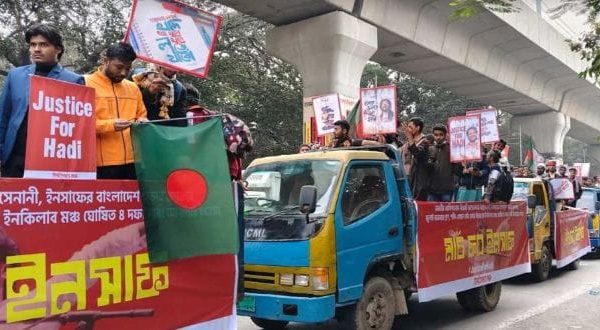 শহিদ ওসমান হাদি হত্যাকান্ড: ন্যায় বিচারের দাবিতে ইনকিলাব মঞ্চের ‘মার্চ ফর ইনসাফ’ কর্মসূচি