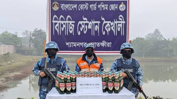 সাতক্ষীরার শ্যামনগরে কোস্ট গার্ডের অভিযানে বিপুল পরিমাণ ভারতীয় মদ জব্দ