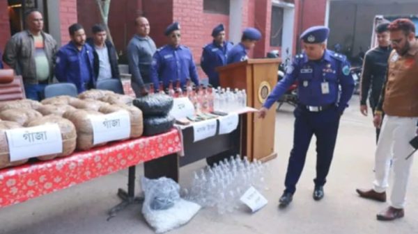 নওগাঁয় মাদকবিরোধী অভিযানে বাংলা মদ ও ৭০ কেজি গাঁজা উদ্ধারসহ ২ জন আটক