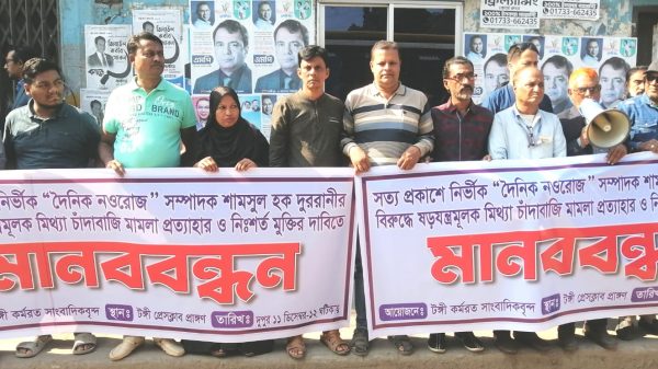 গাজীপুর টঙ্গীতে নওরোজ সম্পাদক শামসুল হক দুররানীর নিঃশর্ত মুক্তির দাবিতে মানববন্ধন