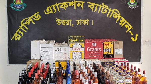 গুলশানে ৫৪০ বোতল বিদেশী মদসহ এক মাদক ব্যবসায়ী র্যাবের হাতে আটক